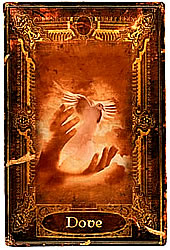 Throughout history the Dove has symbolized peace and innocence in nearly all cultures. Dove's soft cooing and gentle nature bring a calmness to any situation. The Dove appears where peace has been attained or there is a need to bring events to a peaceful ending. It denotes a time to let lose of grievances and settle conflicts in a way that benefits all parties equally.